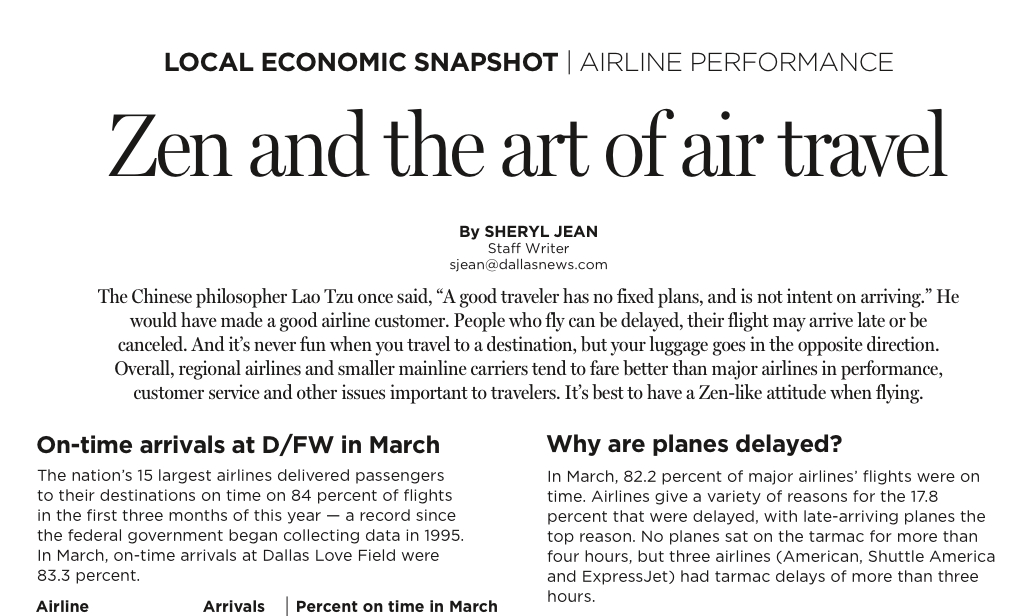 “Zen and the Art of Air Travel,” a short article about airline delays in the Dallas Morning News, doesn’t have much to do with Zen, but that’s sort of the point. Going all the way back to Eugen Herrigel’s 1948 Zen in the Art of Archery (Zen in der Kunst des Bogenschießens) and Robert Pirsig’s 1974 Zen and the Art of Motorcycle Maintenance, the first books to use the “Zen in/and the art of…” titles, there was little connection to Zen Buddhism. The ubiquity of “Zen in/and the art of…” speaks to the increasing dissociation of Zen from any historical and cultural context, as well as the perception that Zen is embedded in the arts. Anything can be a Zen art, to the benefit of lazy headline and title writers.